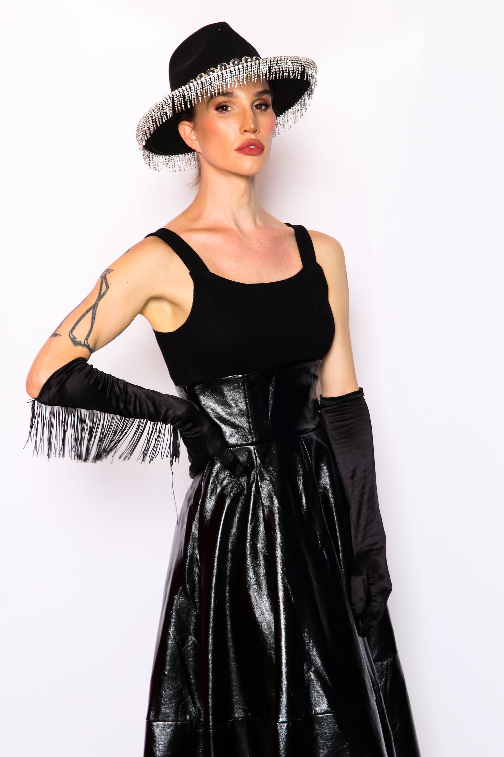 Dark. Daring. Divine. The Vamp is dress that glides with every step and commands every room. Designed with a body-skimming silhouette, this show-stopper catches the light — and every eye — with its subtle shimmer and dramatic flow.